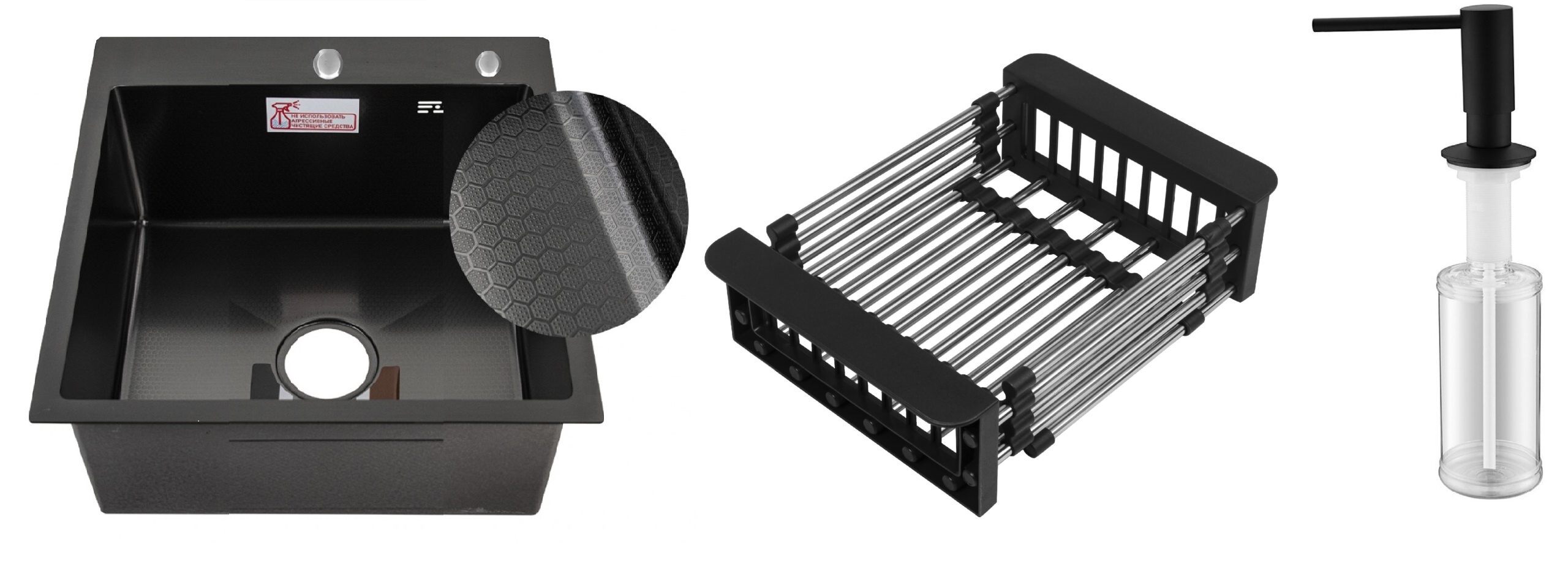 Best Decor Black 5550, коландер KR-1 BLACK, дозатор SD-1 BLACK, комплект (.) Акция