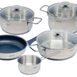 Изготовлена из нержавеющей стали. В комплекте: — кастрюля с крышкой Ø 20 см. — кастрюля из жаропрочного материала с крышкой Ø 20 см. — сотейник с крышкой Ø 24 см. — сковорода Ø 24 см. — глубокая кастрюля с длинной ручкой Ø 14 см. Подходит для всех типов плит, газовых, электрических, стеклокерамических и индукционных. Подходит […]