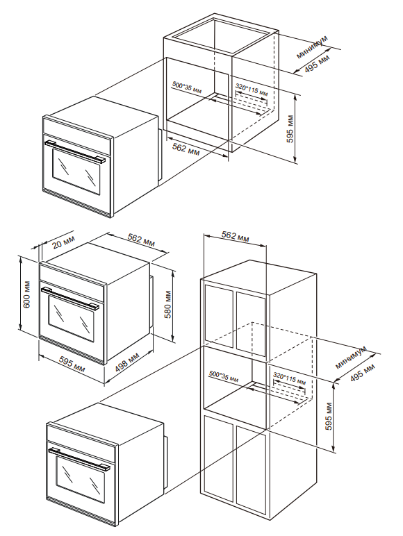 | Габариты духового шкафа | ||