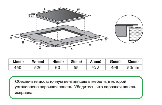 | Задняя левая зона | 200*215 мм, 1500 Вт (бустер 1800 Вт) |