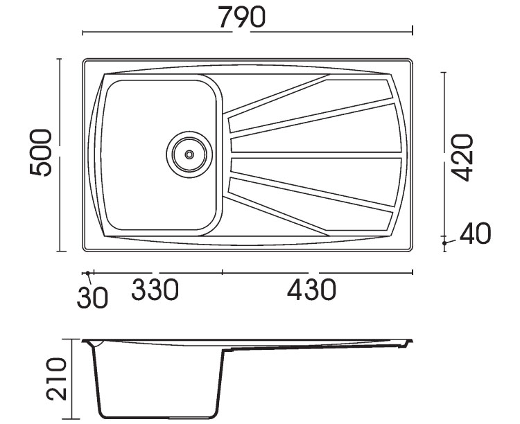 | Размер мойки | 790 x 500 мм |