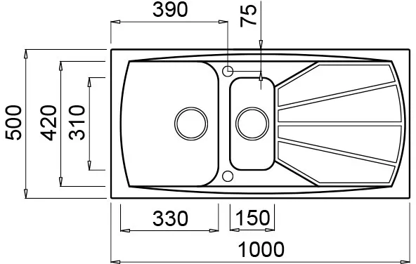 | Размер мойки | 1000 x 500 мм |
