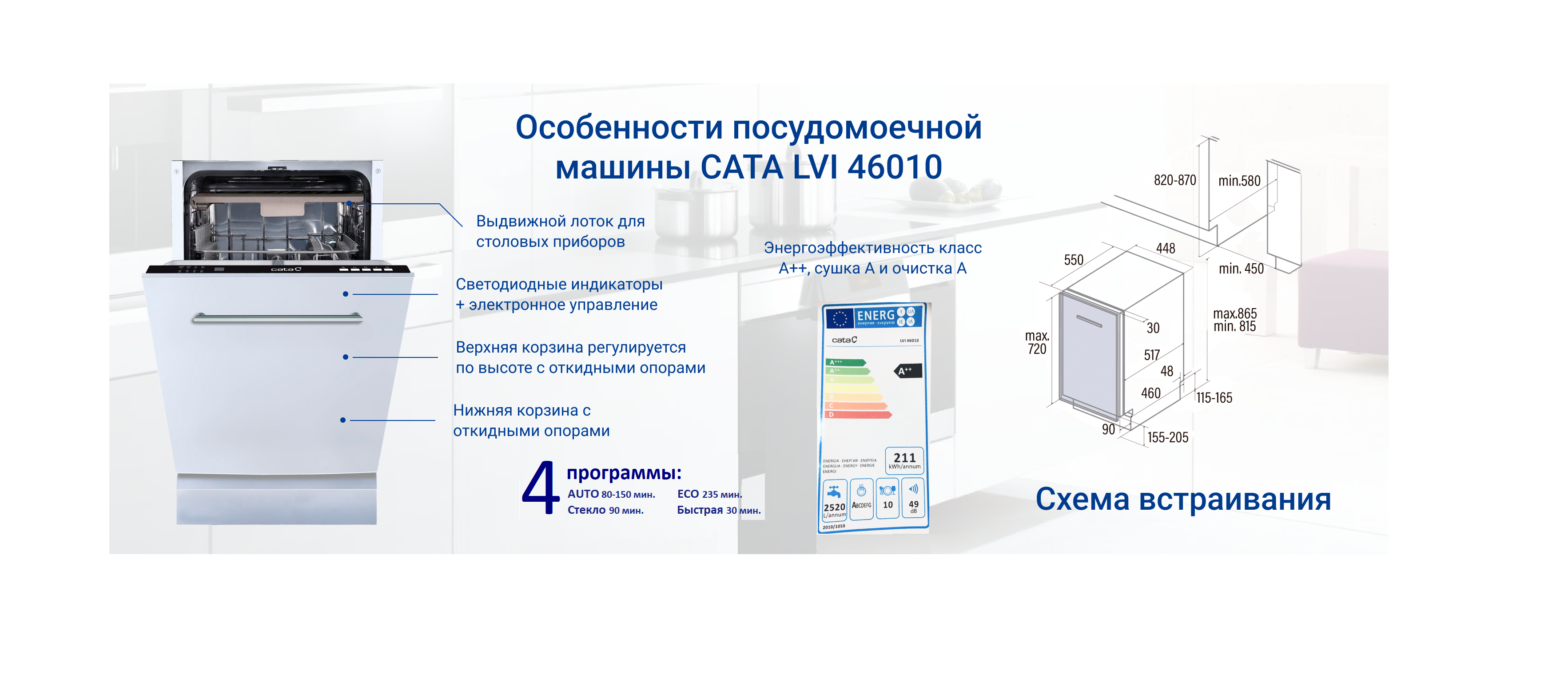 Посудомоечная машина считается одним из самых удобных и функциональных бытовых устройств на кухне. Она выполняет ряд задач, которые ранее требовали больших усилий и времени. В посудомоечной машине предусмотрены несколько программ, что позволяет настроить её работу в соответствии с особенностями посуды и степенью загрязнения. Кроме того, встраиваемая посудомоечная машина обладает большим количеством полезных функций, которые упрощают её использование.