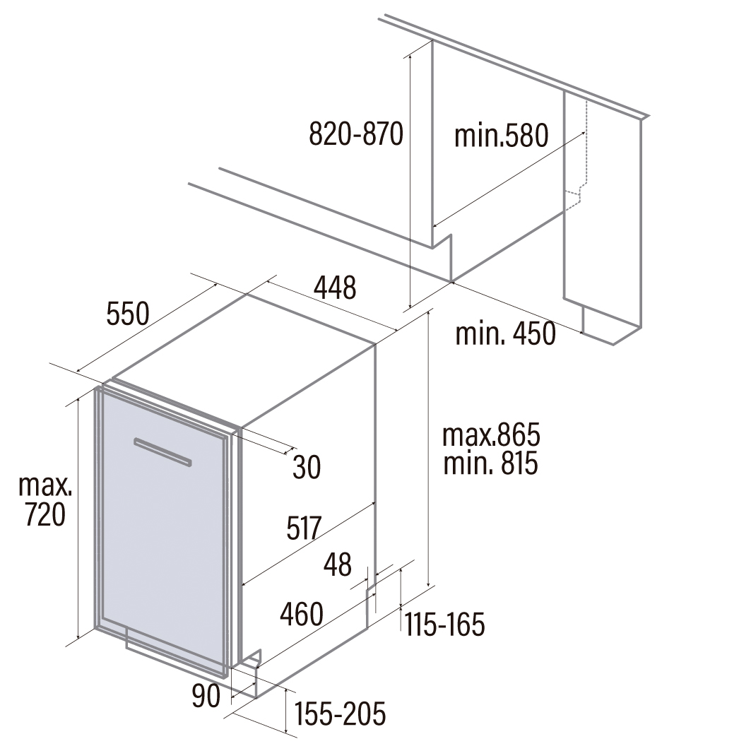| Размеры для встраивания посудомоечной машины | |