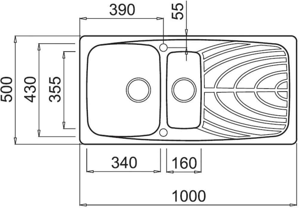 | Размер мойки | 1000 x 500 мм |