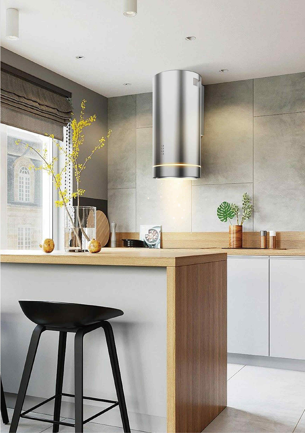 Настенная цилиндрическая вытяжка O2 — это сочетание высокой производительности и стильного дизайна. Её продуманная конструкция обеспечивает эффективное удаление запахов и паров благодаря мощному мотору и оптимальной системе воздуховода. Лаконичная форма цилиндра впишется в любой интерьер — от лофта до минимализма. Данная вытяжка отлично справляется с задачами на больших кухнях с интенсивной готовкой. Управление электронное, а выбор режимов позволяет гибко настроить работу под любые нужды. Это решение, где эстетика встречается с функциональностью.