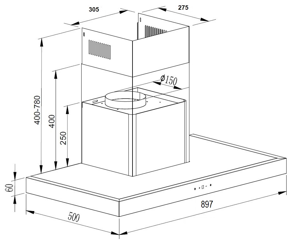 Благодаря мощному бесщёточному мотору с электропотреблением 100 Вт, производительность вытяжки составляет: 1020 куб. м/ч