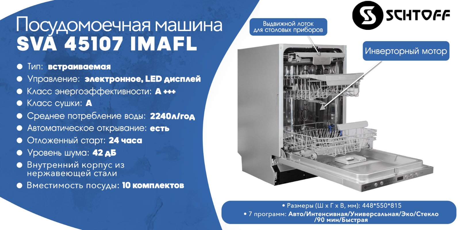 Посудомоечные машины с инверторным мотором значительно экономят электроэнергию. Мотор автоматически регулирует свою скорость в зависимости от загрузки. Это позволяет эффективно справляться даже с сильно загрязненной посудой. Вы можете быть уверены, что посуда будет чистой и блестящей после каждой мойки. Простота управления и интуитивно понятный интерфейс делают использование машины доступным для всех членов семьи. Кроме того, наличие различных программ мытья позволяет выбрать оптимальный режим для любого типа посуды, включая хрупкие предметы. Еще одной удобной функцией посудомоечных машин Schtoff является автооткрывание двери по окончании цикла мытья. Эта функция позволяет воздуху свободно циркулировать внутри машины, что способствует более быстрому высыханию посуды. Посудомоечные машины Schtoff отличаются высокой надежностью и долговечностью. Это значит, что Вы сможете пользоваться машиной долгое время без необходимости в ремонте.