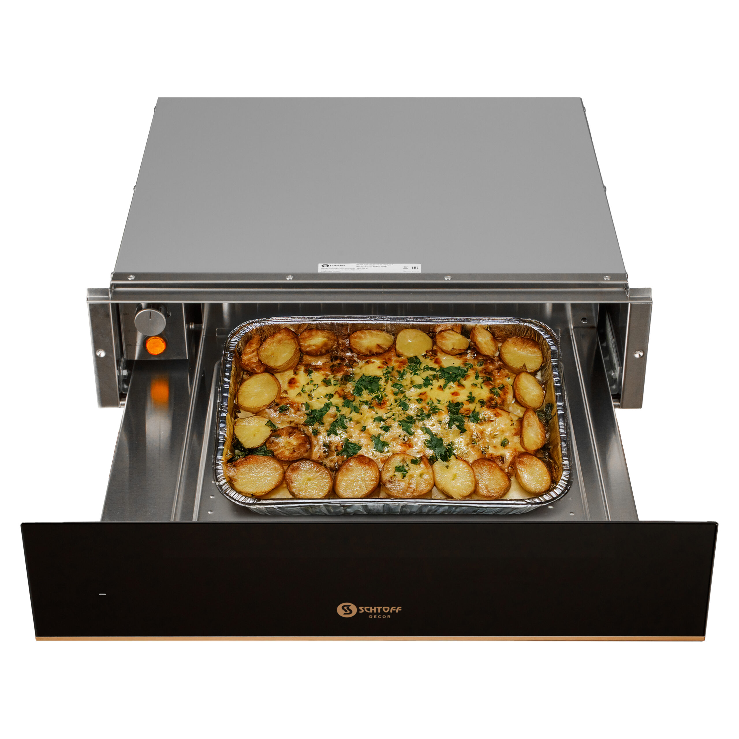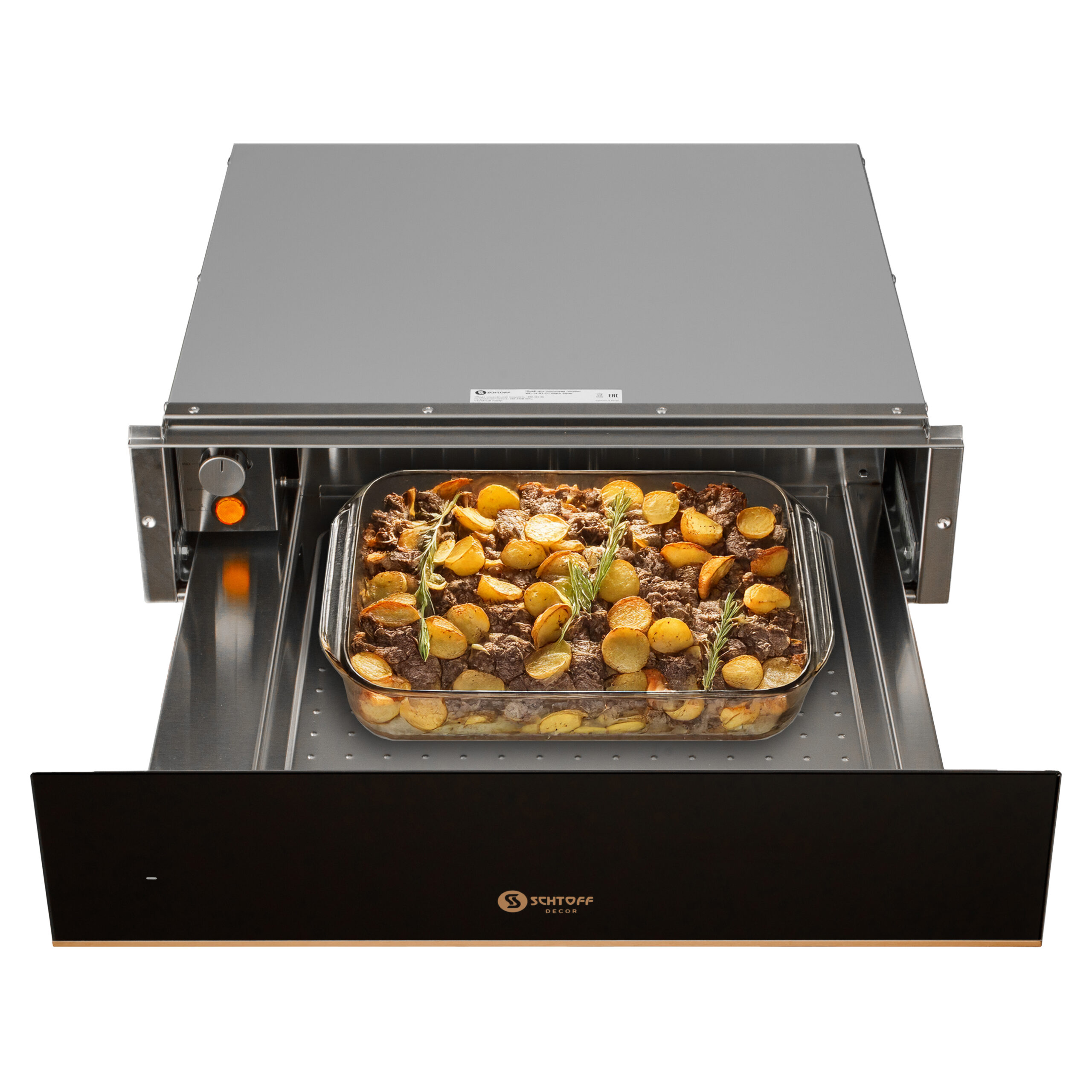 Шкаф для подогрева посуды SCHTOFF – это компактный прибор, который за 90 секунд разогреет до шести тарелок любого размера, удержит температуру часами и при этом потратит на 30 % меньше электроэнергии. Один прибор заменяет сразу три устройства: тёплый шкаф для ресторанной подачи, расстоечную камеру для выпечки и стерилизатор для детской посуды. Внутри свободно размещаются тарелки от 15 до 32 см, кастрюли, формы для лазаньи и стеклянные банки. Антипригарное покрытие и вентиляционные щели делают уход максимально простым: выключил, протёр, готово к следующему применению. Это не просто техника, а полезное вложение, которое: сохраняет вкус и температуру блюд, сэкономит Ваше время и силы, сделает каждый приём пищи по-настоящему комфортным.
